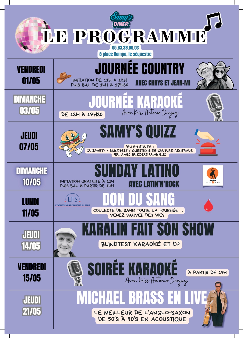 Avec sa terrasse, son salon privatif avec vue sur le circuit d'Albi, une salle de jeux arcades pour les enfants et des soirées animées (rock'n'roll, karaoké, country…), Samy's Diner est idéal pour petits et grands.